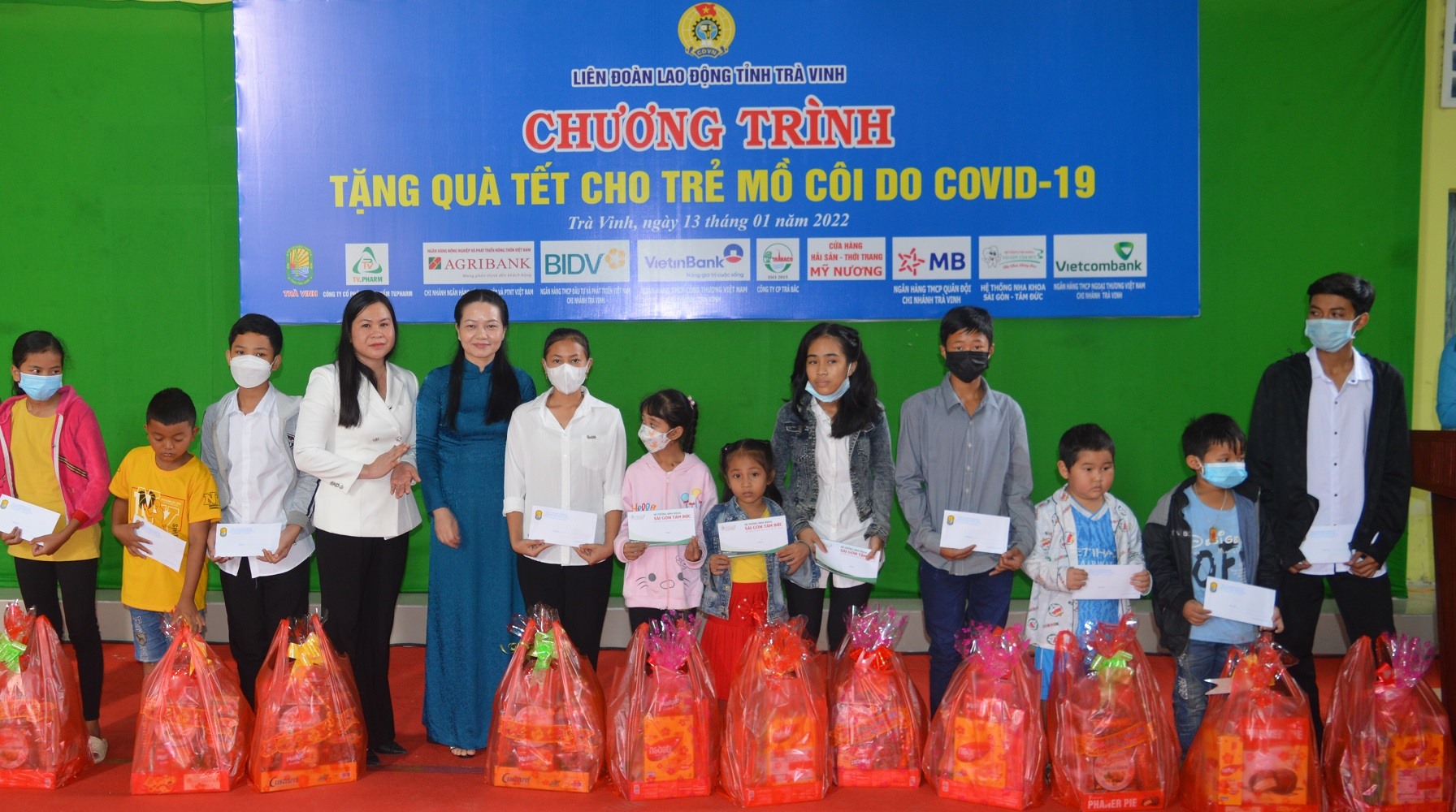 Ngày 13.1, Liên đoàn Lao động (LĐLĐ) tỉnh Trà Vinh tổ chức Chương trình trao quà Tết cho trẻ em mồ côi do COVID-19 đang sinh sống trên địa bàn tỉnh.