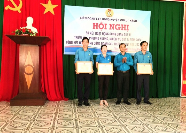Ngày 15.10, theo thông tin từ LĐLĐ huyện Châu Thành, tỉnh Hậu Giang cho biết, tuy mức thu nhập của một bộ phận cán bộ, nhà giáo còn khá thấp, đời sống khó khăn nhưng Công đoàn khối trường học đã có nhiều đóng góp trong hoạt động Công đoàn năm học 2022.