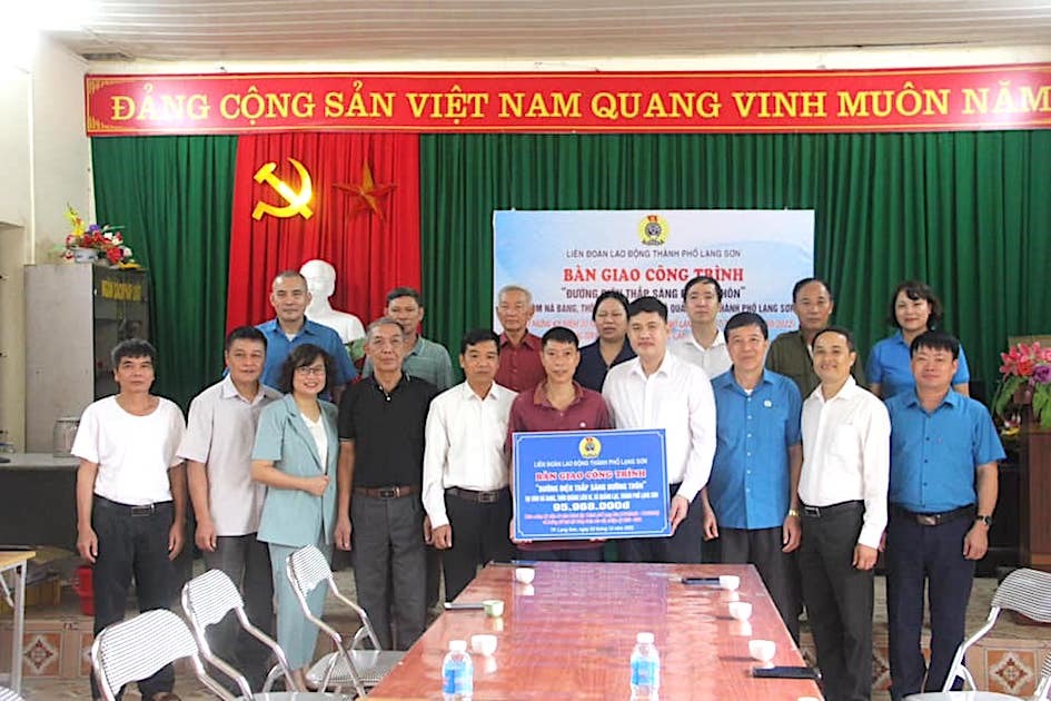 Lạng Sơn - Liên đoàn Lao động thành phố vừa tổ chức bàn giao công trình đường điện thắp sáng đường thôn tại xóm Nà Bang, thôn Quảng Liên 3, xã Quảng Lạc.