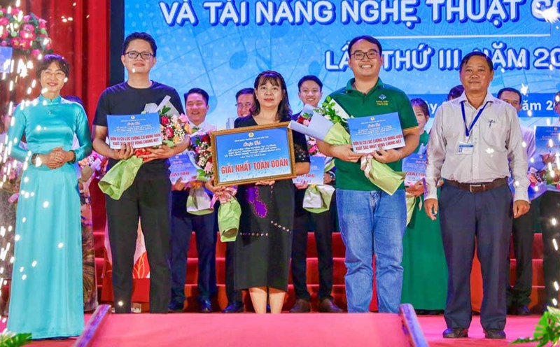 Awarding prizes for the storytelling and artistic talent contest to celebrate the anniversary of the founding of the Vietnam Trade Union