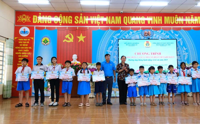 Can Tho - Thoi Lai District Labor Federation (LDLF) has awarded 65 scholarships and 50 gifts to children of union members in difficult circumstances in the area.
