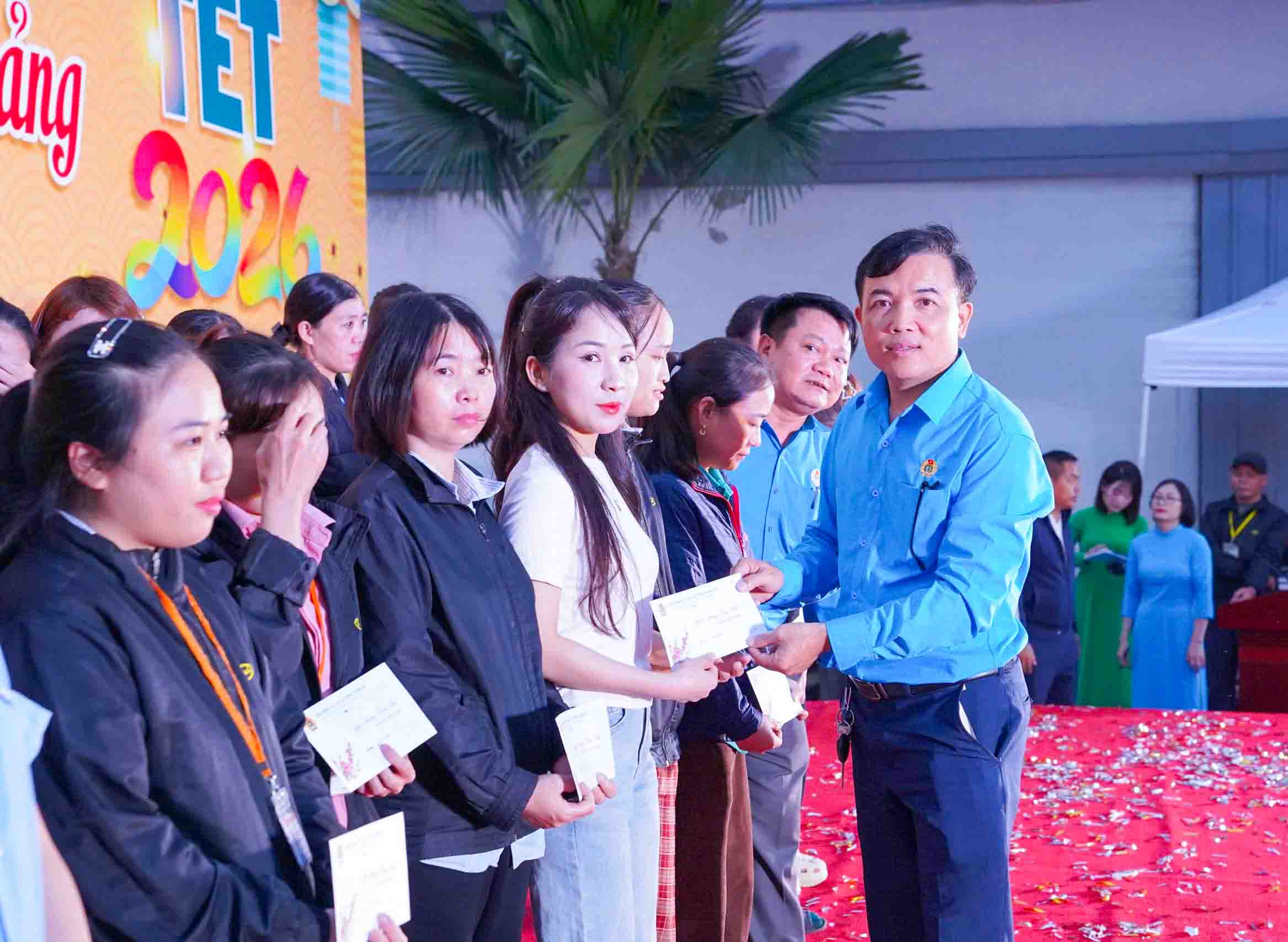 Chairman of Vietnam General Confederation of Labor and Secretary of Bac Ninh Provincial Party Committee celebrate Tet Reunion with workers