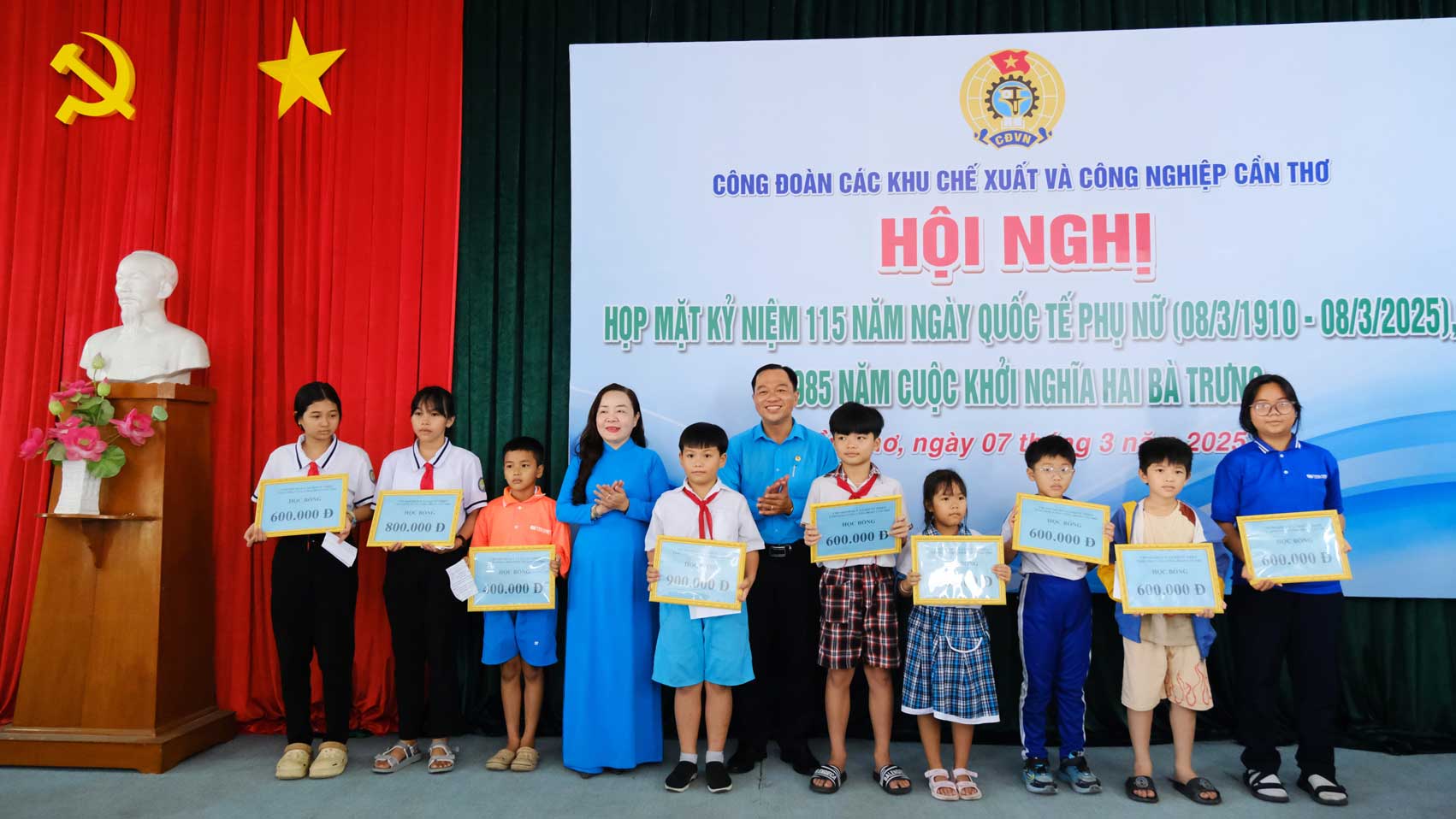 Awarding scholarships to children of union members in difficult circumstances in Can Tho on the occasion of March 8