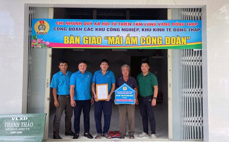 Dong Thap - Industrial and economic zone trade unions hand over trade union shelters to union members with housing difficulties.