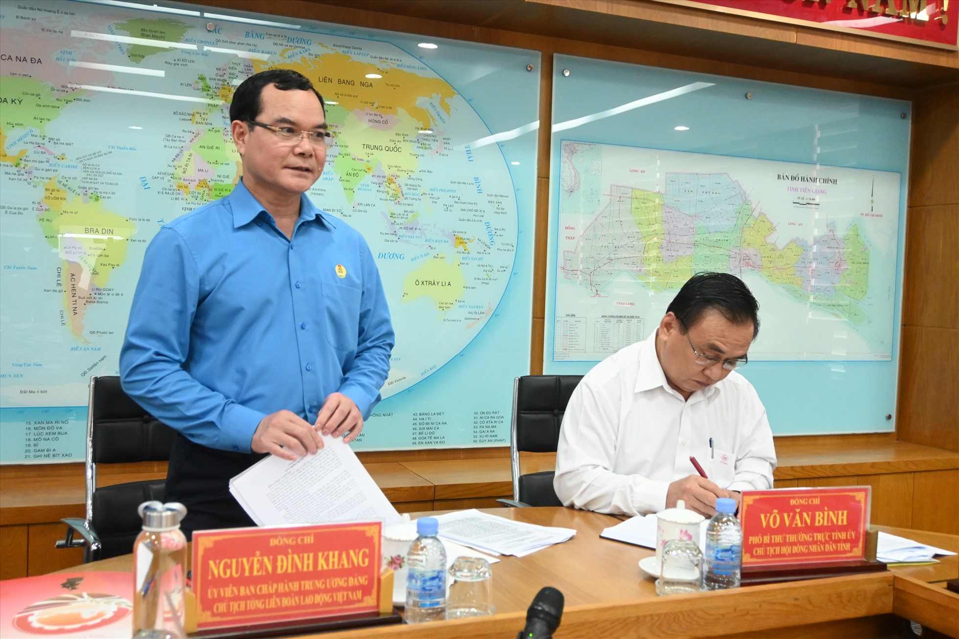 Làm việc tại Tiền Giang, ông Nguyễn Đình Khang, Uỷ viên Trung ương Đảng, Chủ tịch Tổng Liên đoàn Lao động Việt Nam đề nghị Liên đoàn Lao động tỉnh rà soát, sắp xếp lại công đoàn ngành tại địa phương, công đoàn ngành nào dưới 2.000 đoàn viên thì sắp xếp lại.