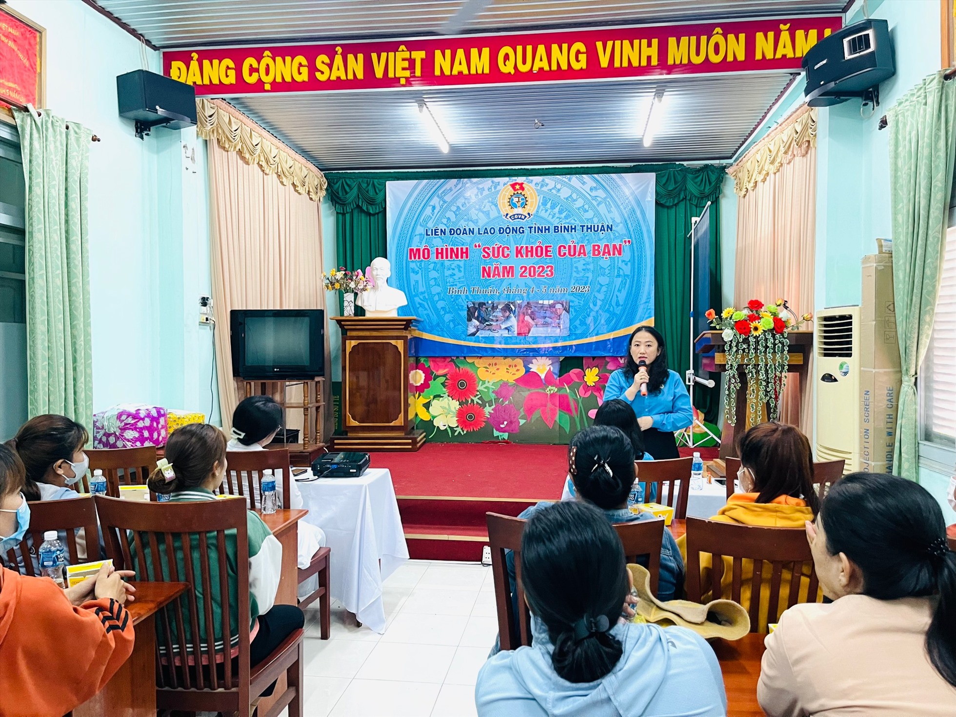 Sáng ngày 16.4, Liên đoàn Lao động tỉnh Bình Thuận tổ chức mô hình "Sức khoẻ cho bạn" năm 2023. Đây là chương trình hướng đến khám sức khoẻ sinh sản, tầm soát tế bào ung thư cho hàng trăm nữ công nhân đang làm việc tại các khu công nghiệp trên địa bàn tỉnh.