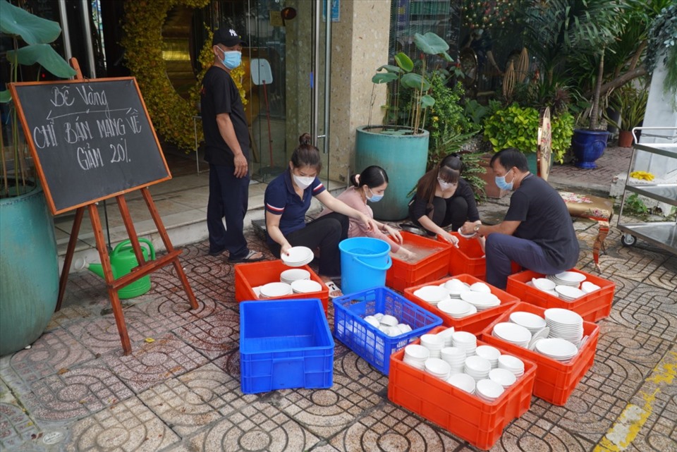 TPHCM - Sau thời gian tạm ngừng kinh doanh hay chỉ hoạt động theo hình thức bán mang đi, giờ đây, nhiều nhà hàng ở TPHCM đã bắt đầu mở cửa để dọn dẹp, sắp xếp lại bàn ghế, sẵn sàng đón khách (phục vụ tại chỗ) ngay khi chính quyền TPHCM chính thức cho phép.