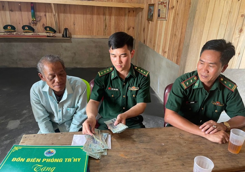 Tr'hy Border Guard Station, Da Nang City Border Guard Command has just coordinated with the Vietnam Fatherland Front Committee of Hung Son commune and the People's Committee of Tram village (Da Nang) to organize the handover of 60 million VND in support funds, affixing a sign to complete the "Border Shelter" house for Mr. A Lang Muoi's household, residing in Tram village, Hung Son commune.