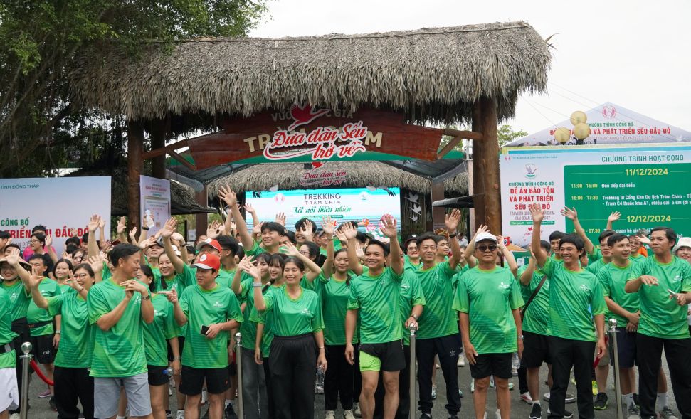 Walking to call for conservation of Sarus Cranes at Tram Chim National Park