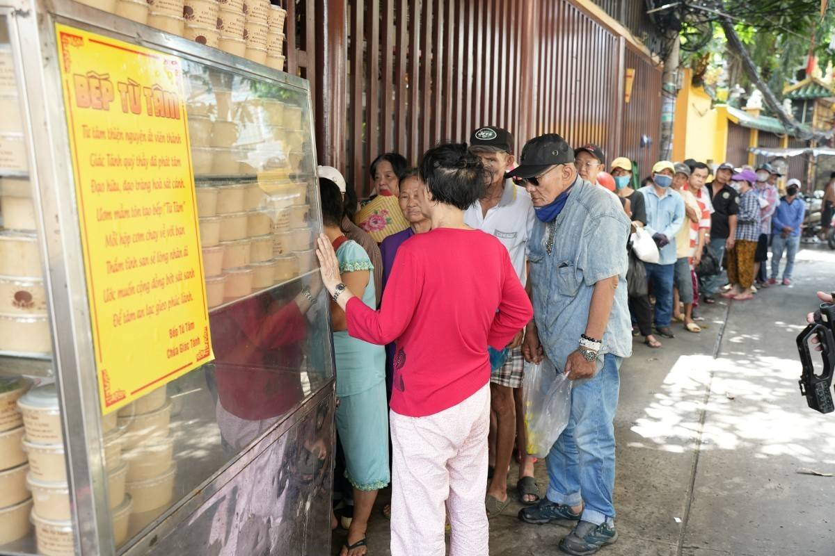 In Ho Chi Minh City, Tu Tam kitchen of Giac Tanh Pagoda (Tan Hoa ward) is becoming a warm support for poor workers with hundreds of free vegetarian meals being given every day.