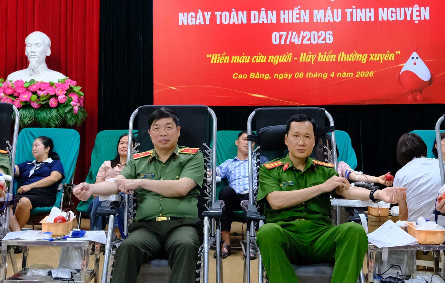 On April 8, Cao Bang Provincial Police participated in the launching ceremony of "All people's voluntary blood donation day" organized by the Provincial Steering Committee for Voluntary Blood Donation Mobilization, with the active response of a large number of officers and soldiers.