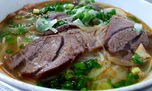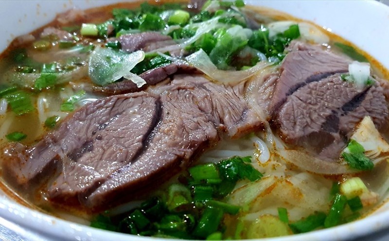Dù chỉ một lần được thưởng thức bún bò ở đây bạn cũng sẽ phải yêu hương vị ấy ngay lập tức. Bát bún bò Huế hấp dẫn với khoanh giò heo và bắp bò đầy đặn, được ninh mềm. Bún được ăn kèm với các loại gia vị như mắm ruốc, ớt, chanh tạo nên hương vị đúng chuẩn của bún bò xứ Huế.