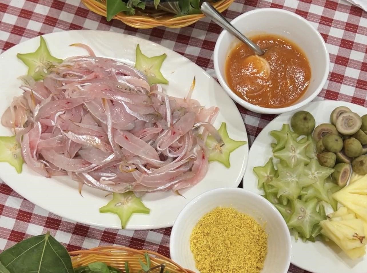Trên bàn của thực khách có thêm ớt xắt lát, rau mùi, quất. Thường là bát nước chấm sẽ có vị đặm nhẹ, ngọt thanh, ai thích ăn có vị chua dịu thì vắt thêm quất. Thực khách cho vào bát rau mùi trước, rồi mới thả ớt lên để miếng ớt nổi lên trên nền xanh, coi mới đẹp mắt.