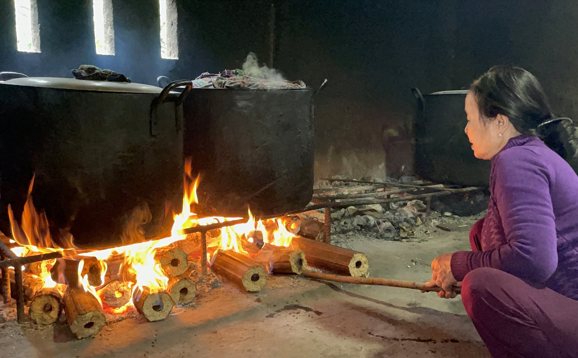 Hue banh tet is cooked in large pots on wood or charcoal stoves. The pot must have enough water to ensure the cake is cooked evenly, usually for 6-8 hours. During the cooking process, people must continuously add water to prevent the pot from drying out.