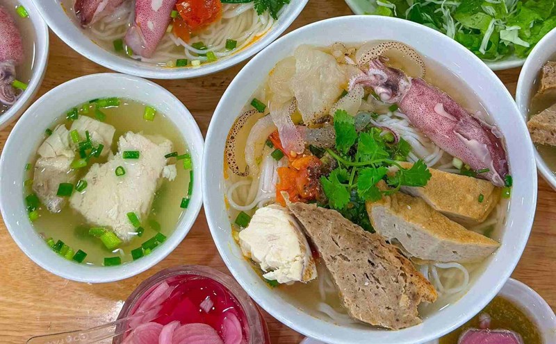 If you have the opportunity to come to Hue, you should once enjoy this dish at Dong Ba and An Cuu markets, or small restaurants in Dong Ba market, An Cuu market, on Ba Trieu and Tran Quang Khai streets... Price Each bowl costs only 20,000 - 25,000 VND.