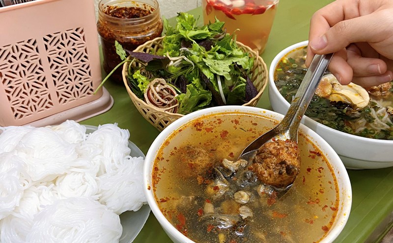 Not only is it a familiar destination for people in the village, the banana snail vermicelli restaurant also attracts a large number of Chinese food lovers. The broth here is a bit thick because it contains powder from green bananas and tofu.