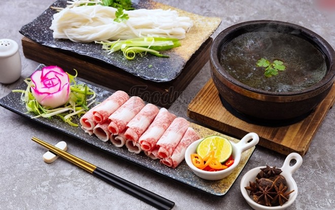 Quán phở anh Trà lúc nào cũng nghi ngút khói, bởi, ngoài nồi nước dùng sôi sùng sục, quán còn đặt một nồi riêng dành để tráng bánh phở tại chỗ. Thực khách có thể theo dõi toàn bộ quá trình tạo ra bánh phở mềm dẻo, thơm ngon.