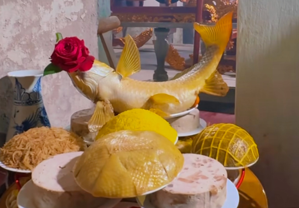 Worshiped carp need to meet the following standards: body bent like a communal house roof, mouth wide open, scales even and golden, eyes intact. When the whole carp is golden brown, lively as if swimming, the hammock will be removed to be placed on the feast.