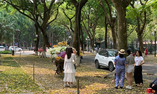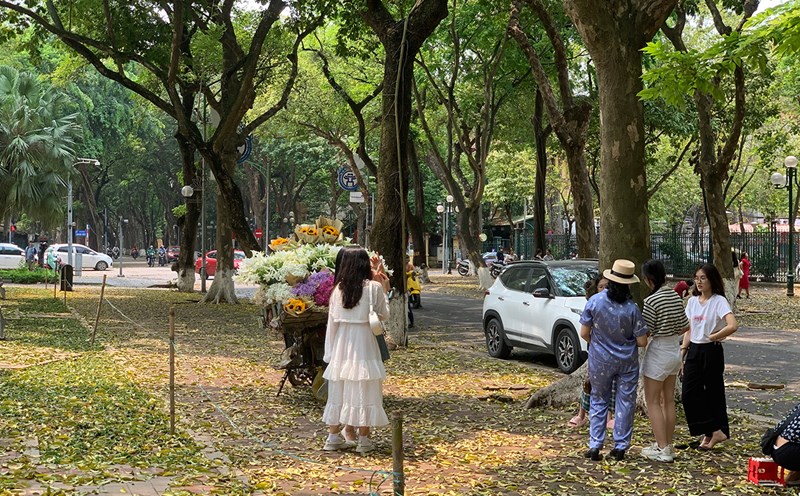 As Hanoi begins to fall, every street is filled with the scent of milk flowers, a subtle scent of heaven and earth between the changing seasons. The neighborhood with the most places selling green rice is Ly Quoc Su, Nha Chung... in front of the Cathedral.