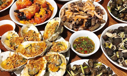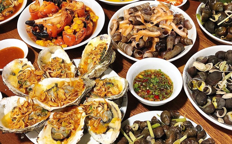 Thực đơn của các quán ốc vô cùng đa dạng, nào là hàu nướng mỡ hành béo ngậy, ngao hấp dừa ngọt thanh, càng ghẹ xào me đỏ au, sò huyết nướng thơm nức mũi, ốc giác bơ tỏi, bề bề rang mè…
