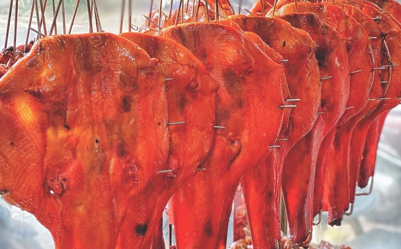 Phần thịt gà được tẩm ướp với nước sốt theo công thức riêng gồm 15 loại gia vị, nổi bật là hoa hồi, thảo quả. “Loại nước sốt này do chồng tôi vừa nghiên cứu, vừa vận dụng kinh nghiệm nhiều năm trong nghề để tạo nên”, chị Thảo nói.
