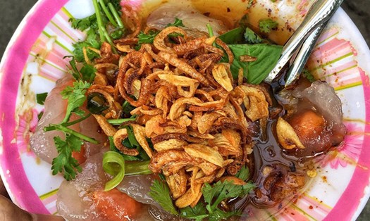 After this cake is soft, the seller will add crab cakes, onion fat and minced meat on top, add a little sweet and spicy fish sauce and shredded carrots and kohlrabi to enjoy. In particular, crab cakes are not made into large pieces but are cut into small pieces, ground with minced meat, seasoned with a little seasoning and stir-fried first.