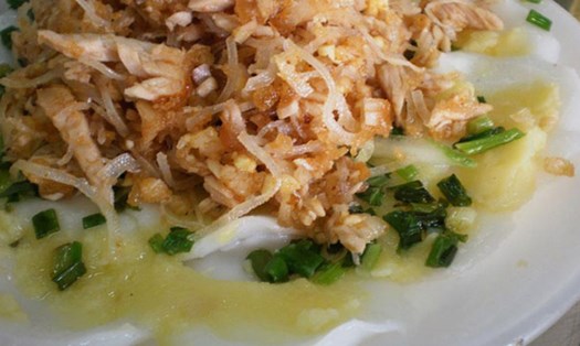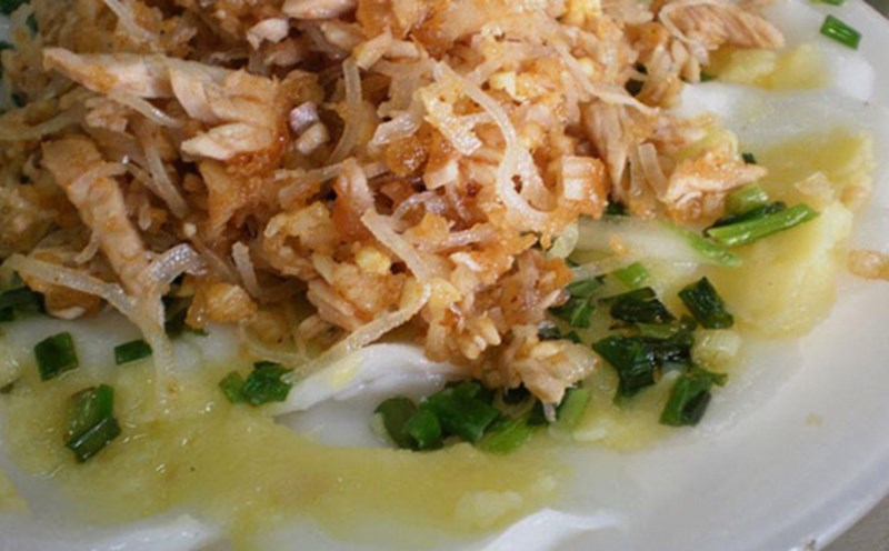 Banh beo cup is one of the famous specialties of Hue. Cups of soft, white banh beo, eaten with pureed shrimp and a little fragrant fried onion, are a delicate afternoon treat enough to warm the bellies of diners near and far.