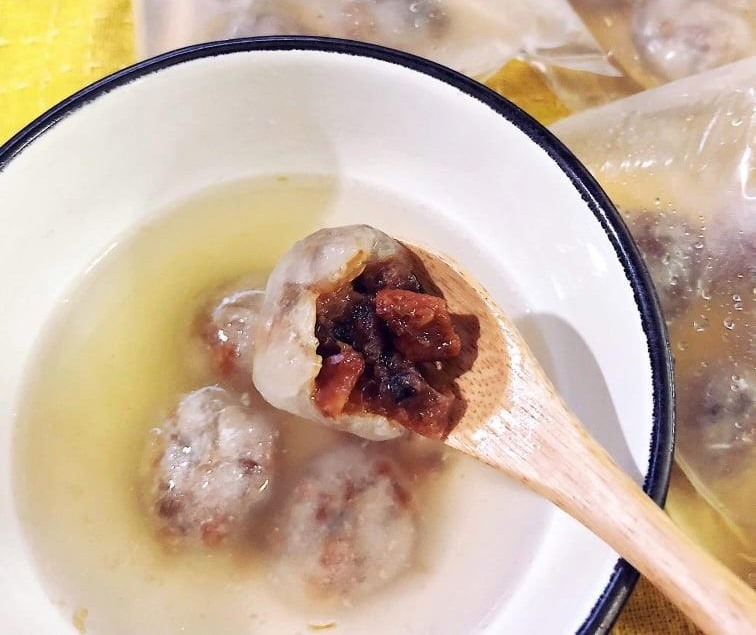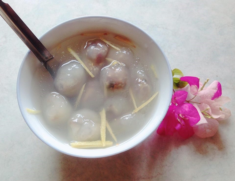 Bát chè trôi tàu, còn gọi là sủi dìn, thường gồm có các viên bánh trôi trắng, tròn chan với nước gừng ấm, bên trên rắc thêm chút lạc rang giòn. Nhân của bánh trôi có thể là đậu xanh béo, mịn, cũng có thể là nhân mè đen thơm, bùi kết hợp với dừa nạo. Cắn một miếng bánh trôi, người ăn cảm nhận ngay được cái mùi thơm nức của nước gừng quyện trong vị bùi, ngậy của nhân đậu, kết hợp với mè, lạc thơm lừng.