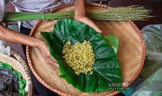 Món ăn không chỉ hấp dẫn về thị giác, mà cả vị giác của người thưởng thức khi những hương vị nhẹ nhàng của mùa thu như nằm gọn trong một gói xôi nhỏ xinh.