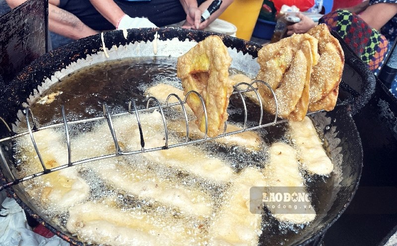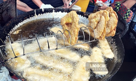 Ban đầu, người thợ cần rán bánh với nhiệt độ vừa đủ, không quá cao. “Nếu mới cho bánh vào đã để lửa to, bánh sẽ có hiện tượng khô và nổ bánh, do bên trong chưa nở hết”, anh Khánh giải thích.