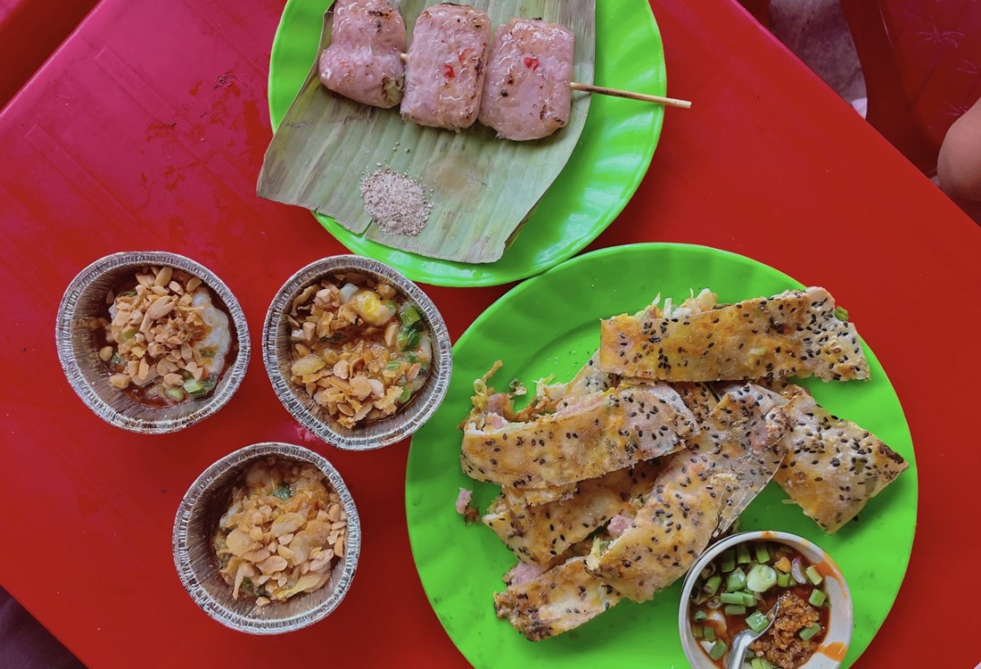 The main ingredient of this dish is rice paper, mixed with boiled quail eggs, dried beef, dried shrimp, shredded green mango, roasted peanuts, fried onions, herbs, kumquat juice... When a customer orders, the owner will put all the ingredients in a bowl, mix them together until the spices are soaked into each strand of rice paper. Each portion of mixed rice paper costs from 25,000 - 30,000 VND.