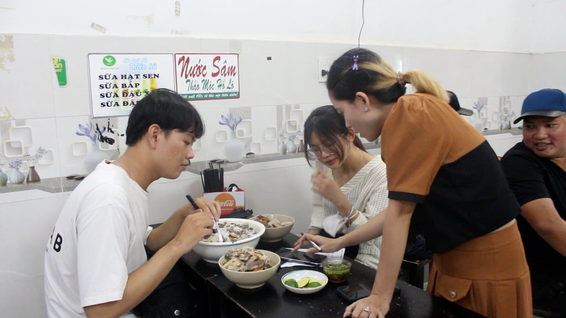 "Mình ăn bún bò Huế rất nhiều rồi nhưng chưa thấy ở đâu có tóp mỡ ăn kèm thế này. Mình thấy ăn khá lạ và hợp miệng” - anh Thành nói.