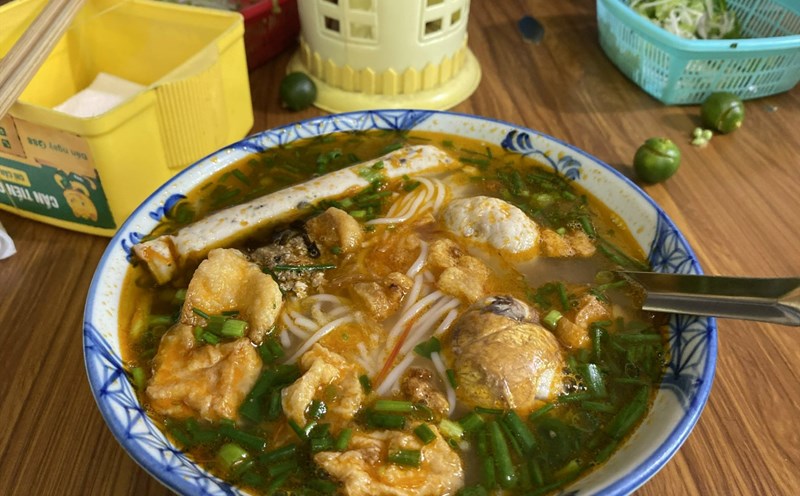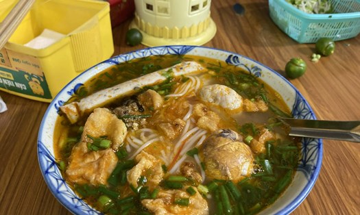 Nhân viên chia sẻ quán đã phải lựa kỹ loại cua có nhiều gạch, xào trước gạch với hành phi, sau đó mới thêm thịt cua vào đảo. Mỗi tô bún đều có miếng riêu to lẫn với hành phi trong bát