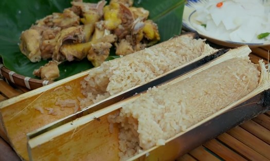 According to Mr. Huynh, bamboo sticks from Truong Son and the Central Highlands have become fresh green cups. In addition, the restaurant's straws are also made of bamboo and a rice ball holding a Tet cup from the leaves of the plant in Vinh Long.