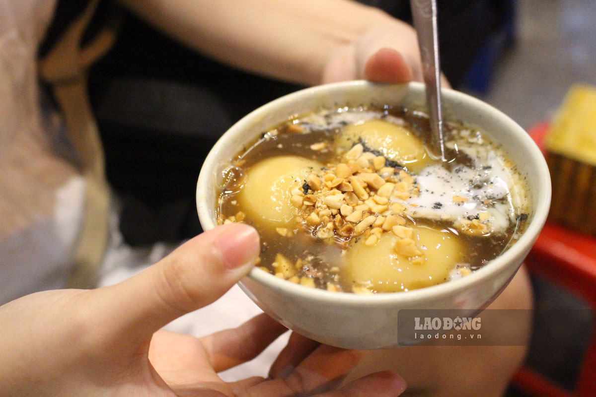 Đối với món bánh trôi tàu, chị Thuý sử dụng 2 loại nhân là nhân đậu xanh và nhân mè đen. Phần nước đường được nấu chủ yếu từ loại đường mật mía để có vị ngọt nhẹ, dễ ăn. Bên trên bát bánh trôi tàu được rắc thêm một chút dừa khô, mè đen và lạc.