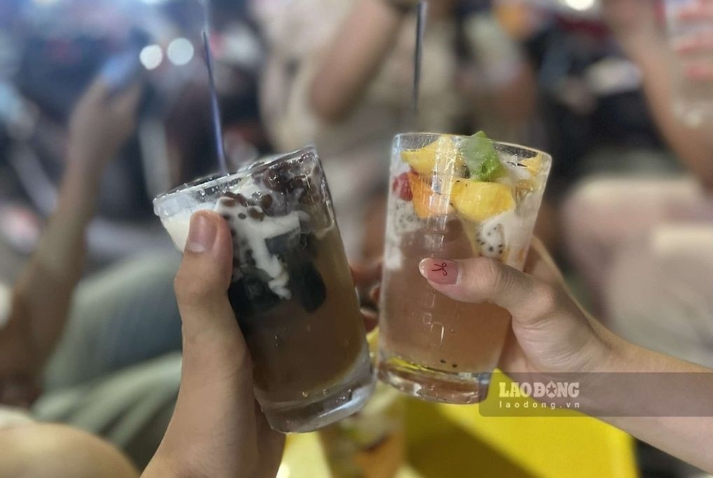 Tea shop tea on Hang Can street is crowded with customers on the day of Lantern Festival, young people eat red bean tea in the hope of finding their soulmate soon.