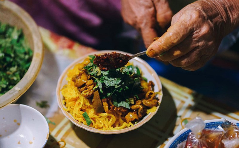 “Xoi banh day” is not the name of a type of sticky rice, nor does it refer to a type of banh day. In Hue, this name is a combination of xoi and banh day - two traditional dishes of the Vietnamese people. If visitors come to Hue and hear the call of “xoi banh day here”, just call the caller and you will have a piece of sticky rice and banh day for breakfast.