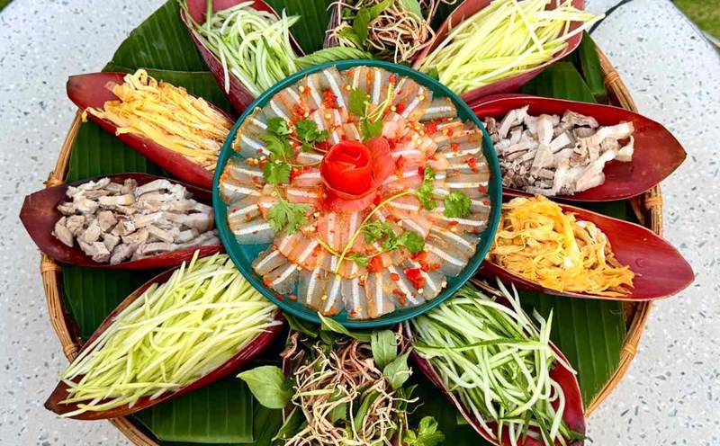 Binh Thuan - Phan Thiet hotpot has been recognized as an Asian record with many ingredients placed on banana stalks, arranged in a beautiful circle, making tourists excited.