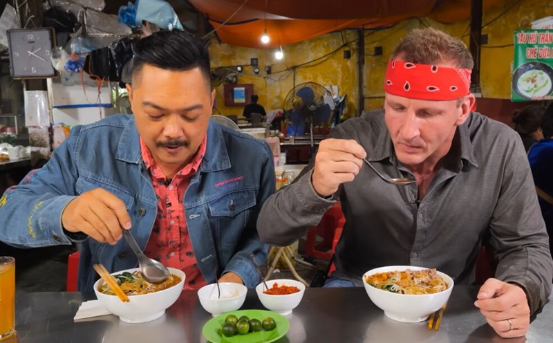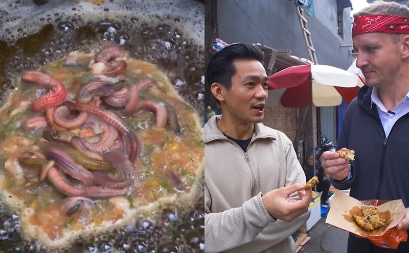 American YouTuber has a memorable experiencem cha ruoi (sandworm omelet), water bugs... and a series of strange street foods in Vietnam.