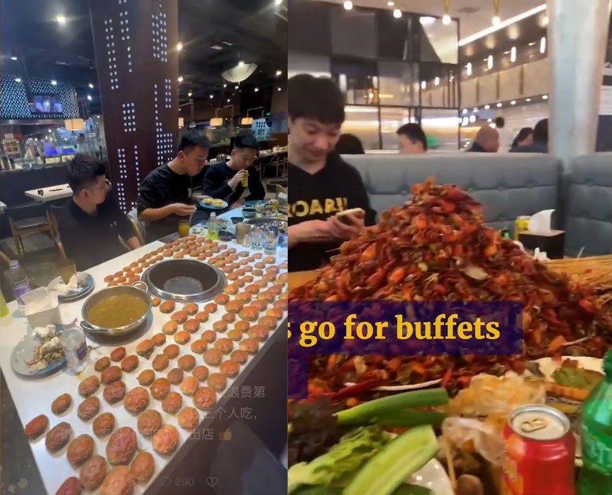 Một nhóm khách ở Trung Quốc gây xôn xao khi ăn buffet hết hơn 300 con cua, 80 ly đồ tráng miệng, 50 hộp sầu riêng, vô số tôm, cá hồi...