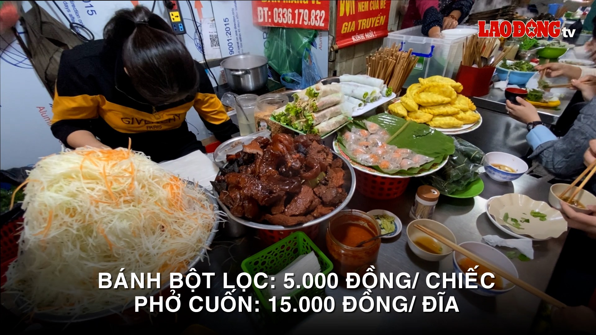 Cầm 100.000 đồng, thực khách thoải mái ăn uống trong ngõ Đồng Xuân với hủ tiếu, bún, phở, bánh tôm, bánh bột lọc... giá khoảng 20.000 đến 40.000 đồng.