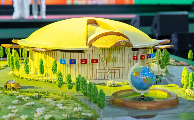 On the evening of October 31, at the 2025 Autumn Fair, the Vietnam Exhibition Center model was shaped with 410kg of sticky rice and 100kg of beans, setting a Vietnamese record.