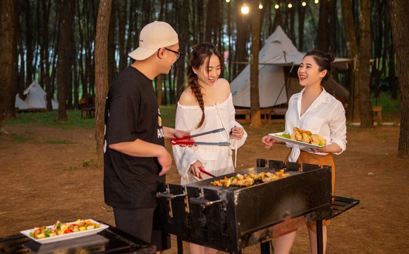 “Ban đầu khi mới cắm trại, gia đình mình thường chọn các địa điểm an toàn, đông người như Ba Vì, và đi cùng bạn bè", chị My cho biết. “Lúc ấy mình không có nhiều đồ đạc, thiếu nhiều thứ lắm nên thỉnh thoảng, hai mẹ con lại lon ton chạy sang mượn các lều “hàng xóm”. Dù có chút ngại nhưng vui, mọi người đều sẵn lòng chia sẻ. Con trai mình khá thích thú với công việc này", chị My kể.