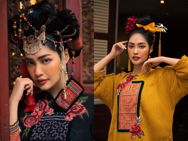 BST được lấy cảm hứng và sử dụng chất liệu thổ cẩm Tây Bắc làm chủ đạo đã tạo nên sức hút “không phải dạng vừa” cho những thiết kế mang đậm chất truyền thống nhưng vẫn trẻ trung năng động.