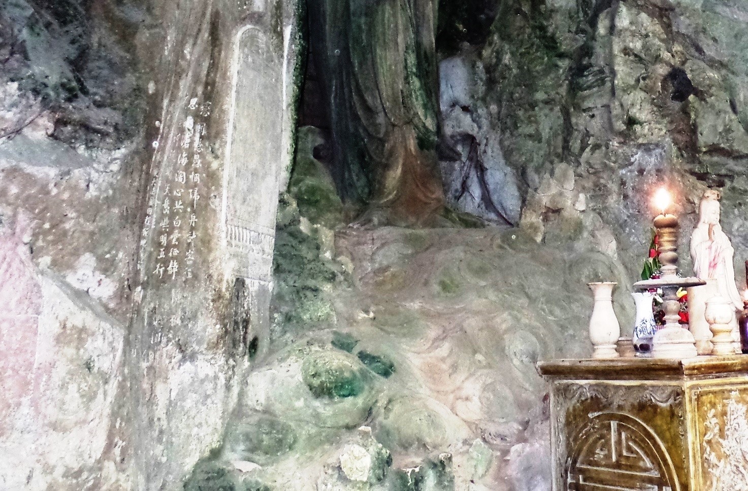 Đoàn Phật tử cũng có cơ hội chiêm bái, cầu an trước tượng Quán Thế Âm Bồ Tát bằng đồng cao 12m. Đứng chắp tay trước tượng Phật bà từ bi, ai nấy đều thấy trong lòng an yên đến lạ.