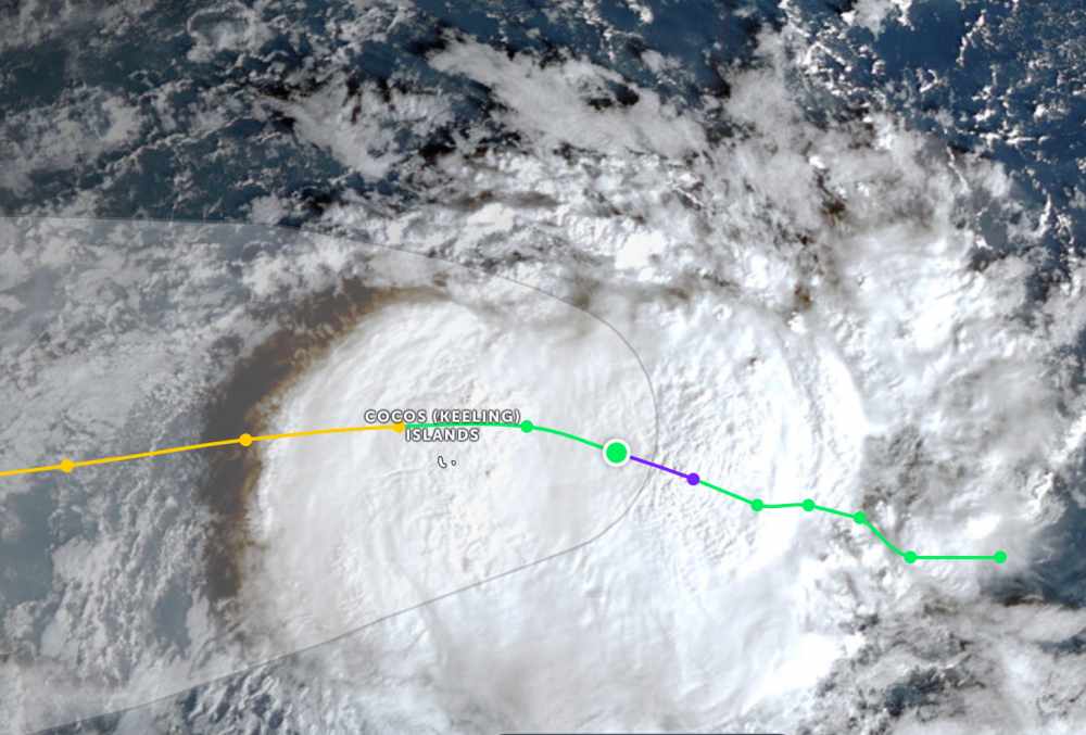 Hurricane Grant is rolling across the Indian Ocean, located about 141 km east of the Cocos Islands (in Australia).