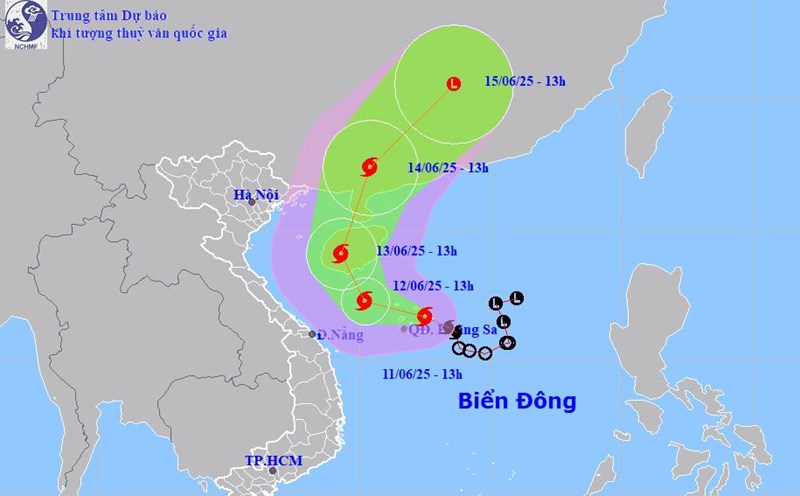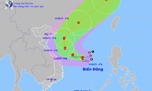 Meanwhile, storm No. 1 WUTIP is continuing to strengthen in the East Sea. According to the National Center for Hydro-Meteorological Forecasting, at 1:00 p.m. on June 11, the center of storm No. 1 (storm WUTIP) was at about 16.7 degrees North latitude - 112.5 degrees East longitude, in the sea east of Hoang Sa archipelago.