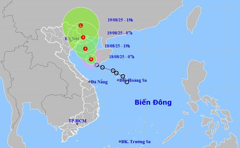 According to the National Center for Hydro-Meteorological Forecasting, on the evening of August 18, the center of the tropical depression was at about 19.8 degrees North latitude; 107.6 degrees East longitude, in the area north of the Gulf of Tonkin, about 140km south-southeast of the coast of Quang Ninh-Hai Phong provinces.
