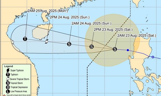 By 10:00 on August 23, the center of the storm was at about 17.4 degrees North latitude - 115.8 degrees East longitude, about 380km East Northeast of Hoang Sa Special Zone. Strongest wind: Level 8-9 (62-88km/h), gust level 11. The storm is moving at a speed of 25 km/h and is likely to continue to strengthen.