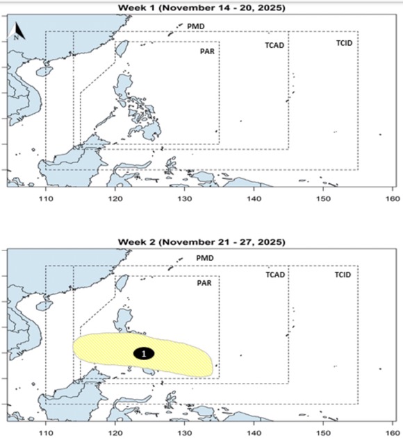 According to the weather forecast on November 14, the Philippine Meteorological Agency said that no low pressure areas are currently being monitored for the possibility of becoming tropical cyclones.
